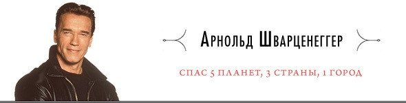 В 1967 году 23-летний бодибилдер Арнольд Шварценеггер был удостоен титула «Мистер Вселенная» в тяжелой атлетике, но людей спас (пока в кино) первый раз он только в 1982 году — в фильме «Конан-варвар». Эта картина стала для Шварценеггера отправной точкой в череде фильмов про отважного героя, который жертвует собой ради других. В 2003 году Арнольд Шварценеггер стал губернатором штата Калифорния в США, чтобы по-настоящему сохранять человеческие жизни, пусть и менее зрелищно. На счету бодибилдера, актера и политика есть и обыкновенные геройские поступки — в 2004 году, находясь в отпуске на Гавайях, он спас тонущего человека с глубины в шесть метров.