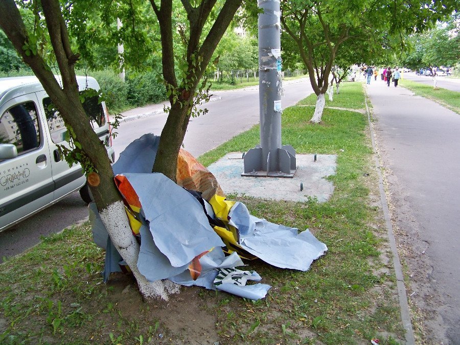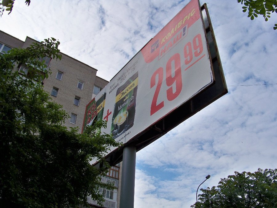 біг "морди" - це пережиток минулого, треба зносити той непотріб, сьогодні вже існують великі екрани (на тій же Кравчука хтось поставив) і вони не смітять, не виглядають паршиво після дощу чи снігу, цікаво дивитись, переваг безліч.