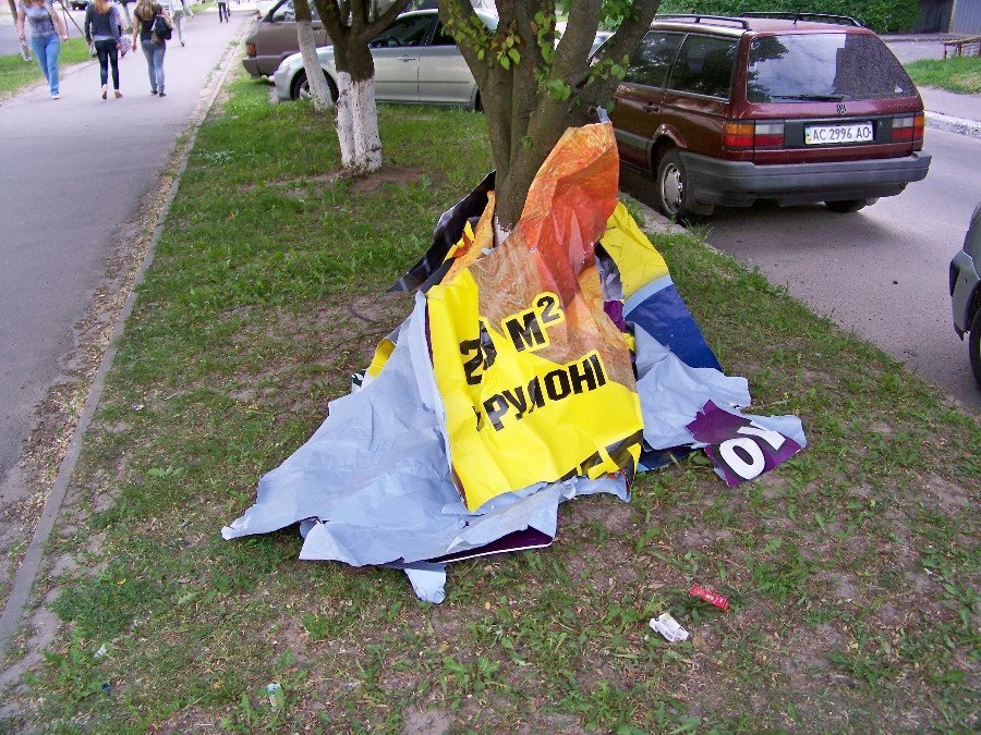 Близько тижня подібне можна спостерігати на вулиці Кравчука у Луцьку. Ні місцевим жителям, ні працівникам відповідних служб справи до цієї "кольорової купи" немає.