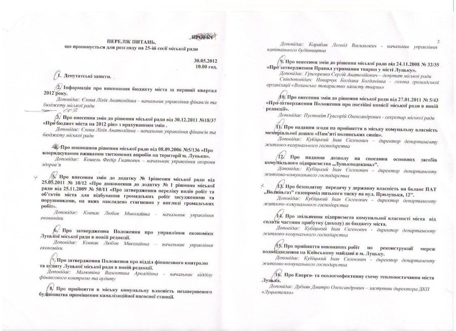 Вчора майже цілий день дивився сесію нашої міськради. Це якийсь абсурд. Доречі, вдалось від знайомого отримати перелік питань, як видають депутатам на засіданнях найбільшої фракції. І що я там побачив. Кожне питання виявляється вже вирішине ще до засідання. Всякі там фракції, групи, комісії. Просто «порєшали» і все. Все, що відмічено у списку співпало з результатами голосування. То я думаю і не варто продовжувати ту пародію. Ось подивіться на значки і будете знати як проголосують. Шкода, що мер мусить тратить свій час на тих товаришів і їх збіговиська. Голосують, не виходить – повторно голосують, аж поки не вийде як треба. Да, ще виявляється вміють просто не голосувати. Є в залі, а ні за, ні проти. Здається вони в своїх матеріалах знайшли не все що їм хотілося б. Певно, не було «рекомендаційних листів від американських президентів». Один повеселив – Гриб, ото актор.