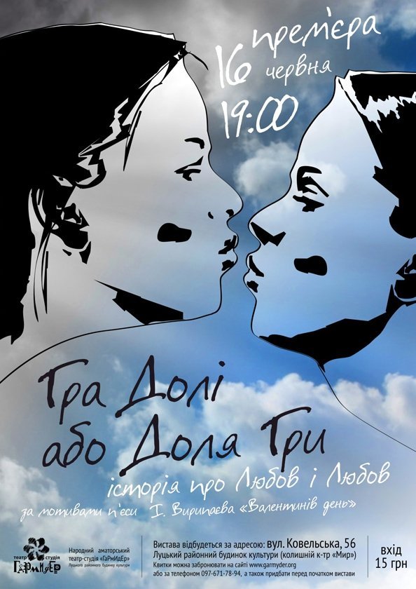16 червня о 19:00 «ГаРмИдЕр» закриває театральний сезон прем’єрою історії про Любов і Любов «Гра Долі або Доля Гри» за мотивами п’єси Івана Вирипаєва «Валентинів день».