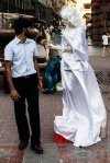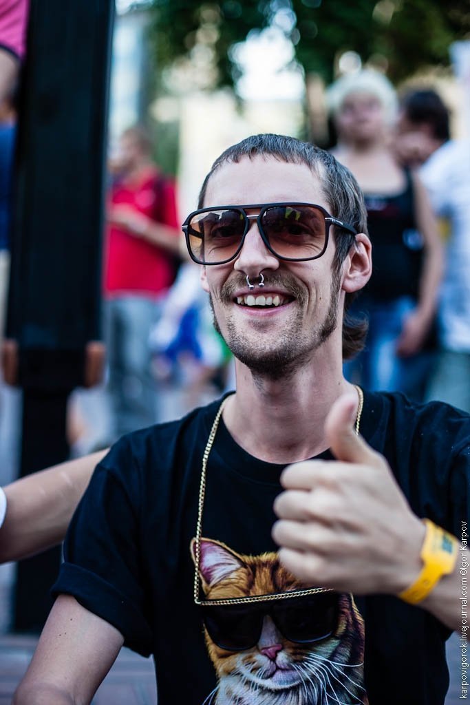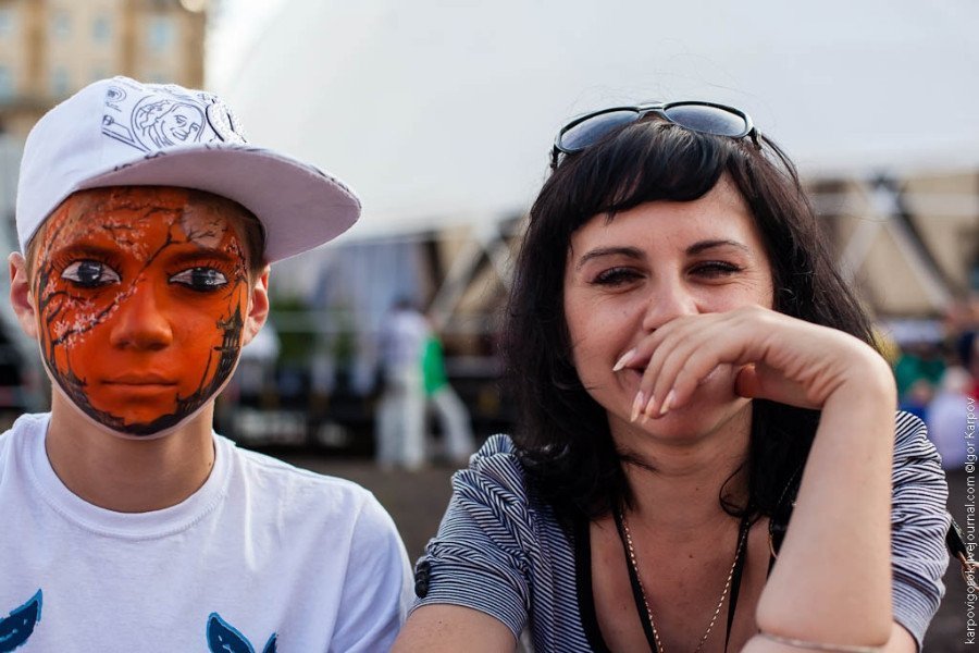 Справа автор картины. Рисует специальными красками, которыми можно рисовать на коже. Нашел я ее в районе вип-зоны.