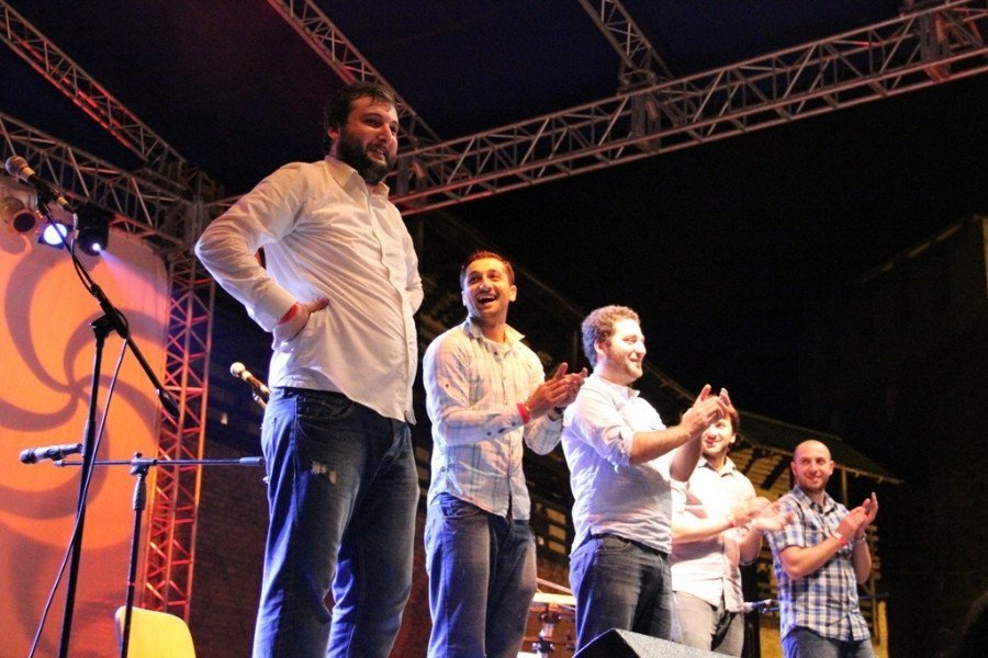 Гігі ще поки "птах" незакільцьований)Не очікувала, що з ним безпосередньо познайомлюся - відкрита й творча людина)) Хотіла просто наживо почути пісні "Мандрівників", які "кручу" Вконтакті. Ми навіть обнялися, коли подякувала йому та його генацвале за виступ)