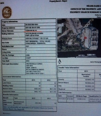 В США любой желающий может узнать, кому что принадлежит в стране. Для этого достаточно сделать запрос в местный офис недвижимости. Я связался с товарищами в Штатах, и вот что получил в результате – апартаменты, которые Евгения указала в качестве своего адреса, числятся на неком Вениамине Нилва.
