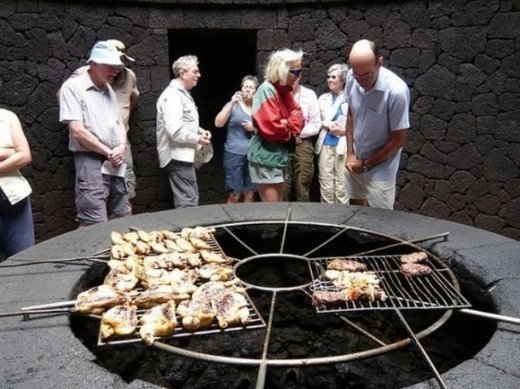 Это самый экзотический ресторан на канарских островах, где блюда готовят на жаре раскаленной лавы, а температура всего в нескольких сантиметрах от поверхности земли превышает +300°С.