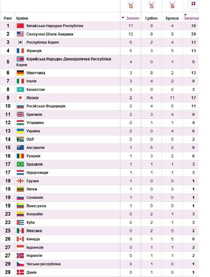 Станом на сьогоднішній ранок Україна посідає 13-ту рейтингову позицію.