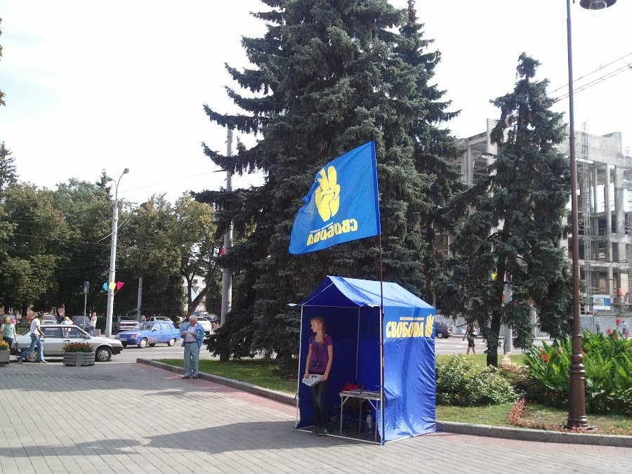 з 22 серпня до 26 серпня 2012 року під час проведення заходів з нагоди Дня Державного Прапора, Дня Незалежності України, Дня міста на Театральному майдані в Луцьку, рішенням виконавчого комітету Луцької міськради заборонено розміщувати інформаційні та агітаційні намети.