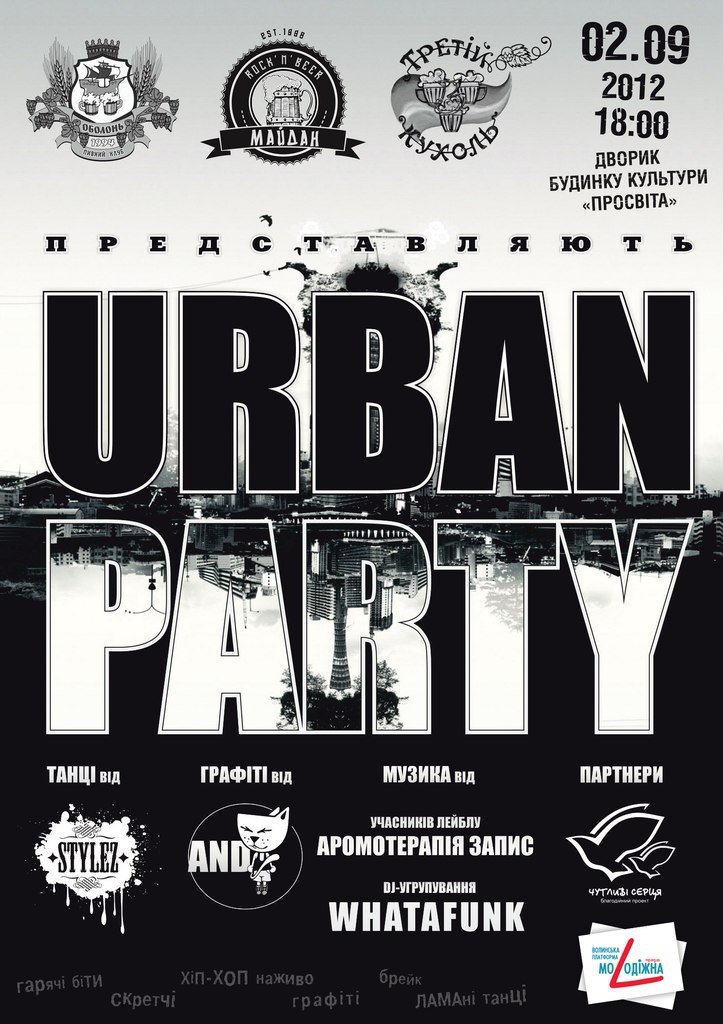Вперше у Луцьку 2-го вересня відбудеться вечірка вуличних культур «Urban Party».
